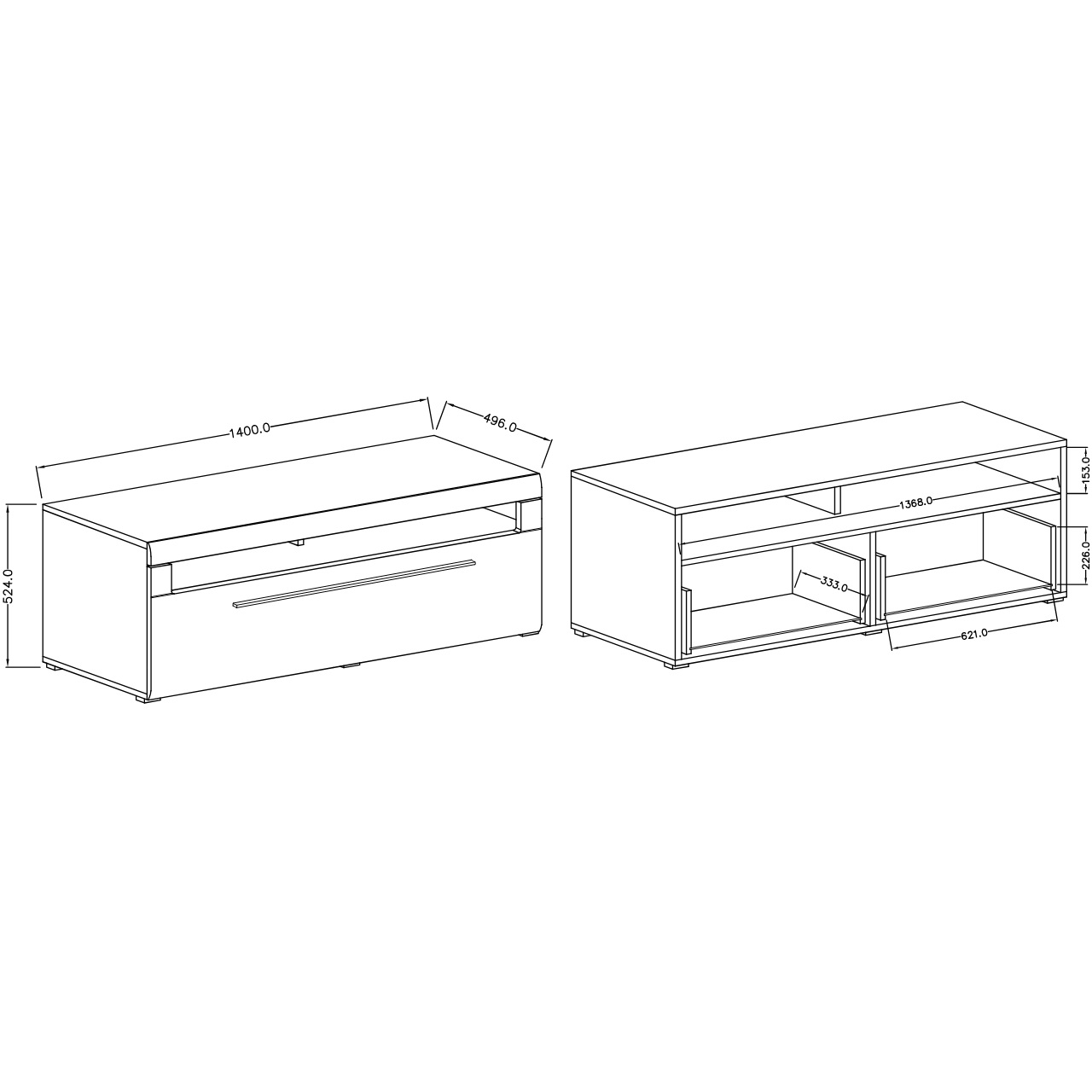 Korpus: Laminovaná drevotrieska Predná časť: Fóliovaná MDF doska |